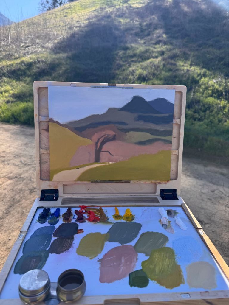 One thought in looking at this after getting home is that it would likely be a more interesting painting if I remove the focus from the central tree and leave it on the distant mountains. When continuing that in the studio, I may give that a try. To be continued…