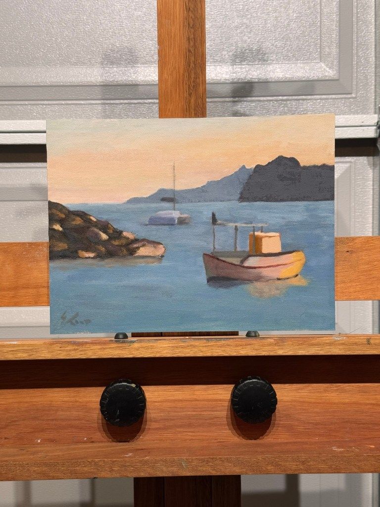 The first time I finished a painting and felt ready to sign it was this one of Amoudi Bay. There are still things I’d change or even add, but I like where it’s at and feel ready to say it’s done.