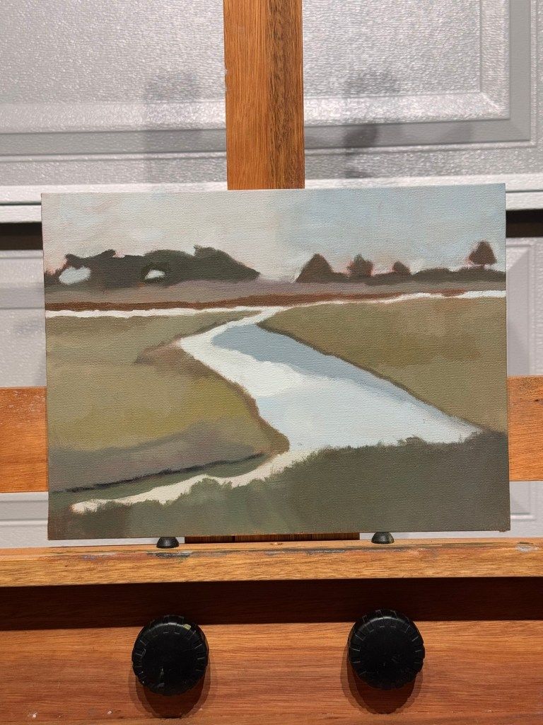 This painting of Baylands Nature Preserve is the first time I painted a landscape and liked what I had created. I really like the simple shapes and suggestion of trees in the distance.