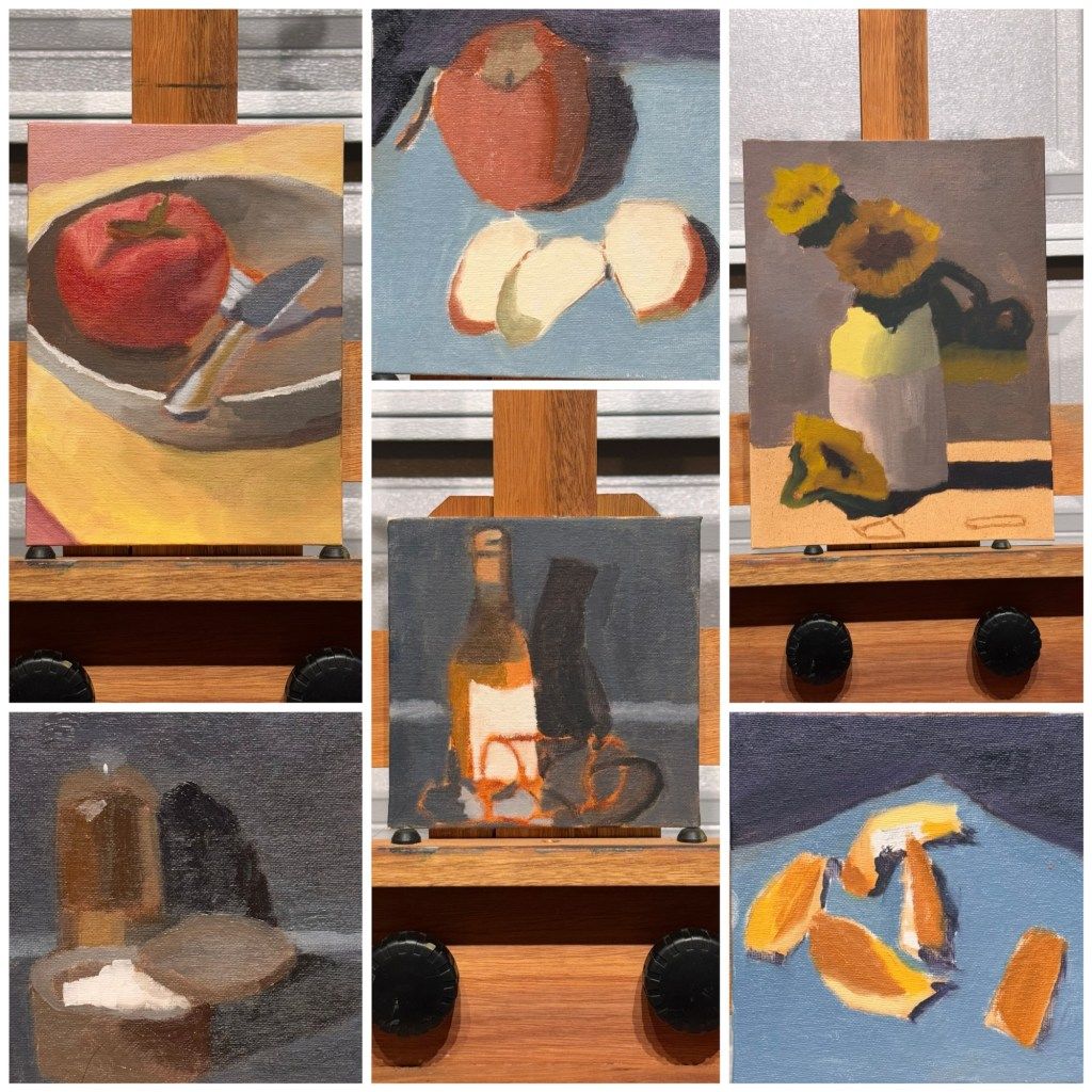 I painted a variety of still life paintings, some from life, others from photographs. Many of them were on cheap 6”x6” canvas panels.